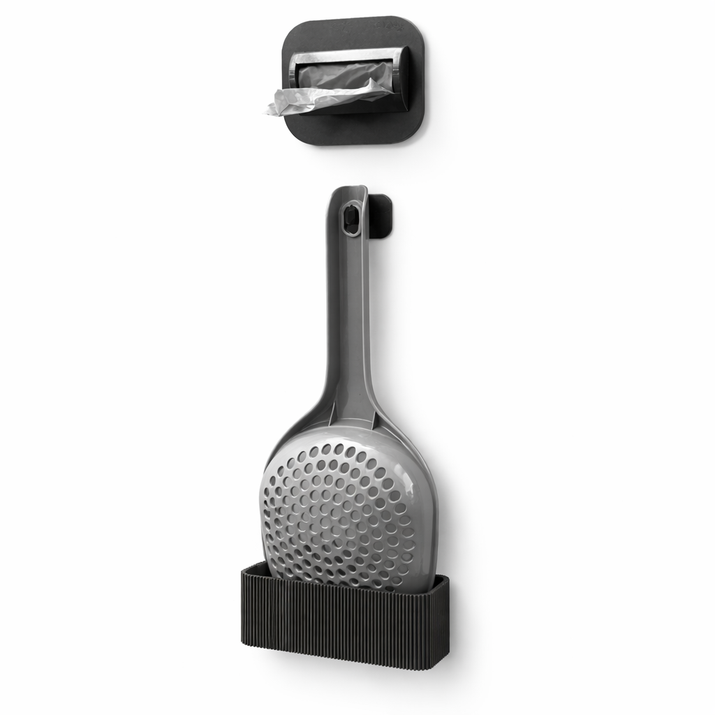 Wandmontiertes Katzenstreu-Schaufelset mit Beutelspender und abnehmbarer Tropfschale – Hygienisches, minimalistisches Design, kein Bohren erforderlich